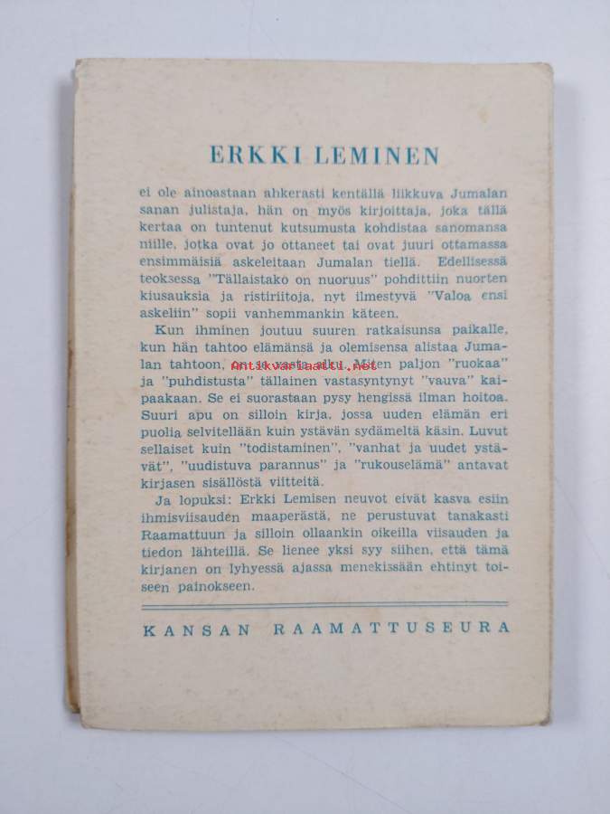 Valoa ja voimaa elämän tielle : eri henkilöiden sanoja ja ajatuksia / koonn. Aurore Tisell ; neljännestä ruotsinkielisestä painoksesta suom. Lyyli Vihervaara.