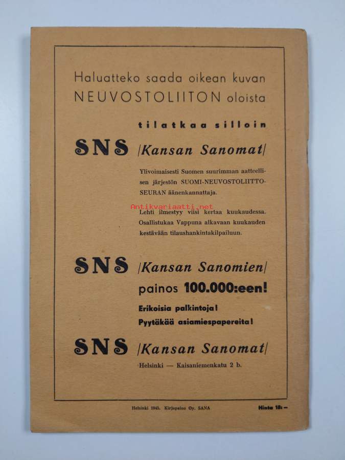 40-luku - Sosialistisen sivistyksen ja kulttuurisuomalaisuuden aikakauskirja. Kesä-heinäkuu 1945