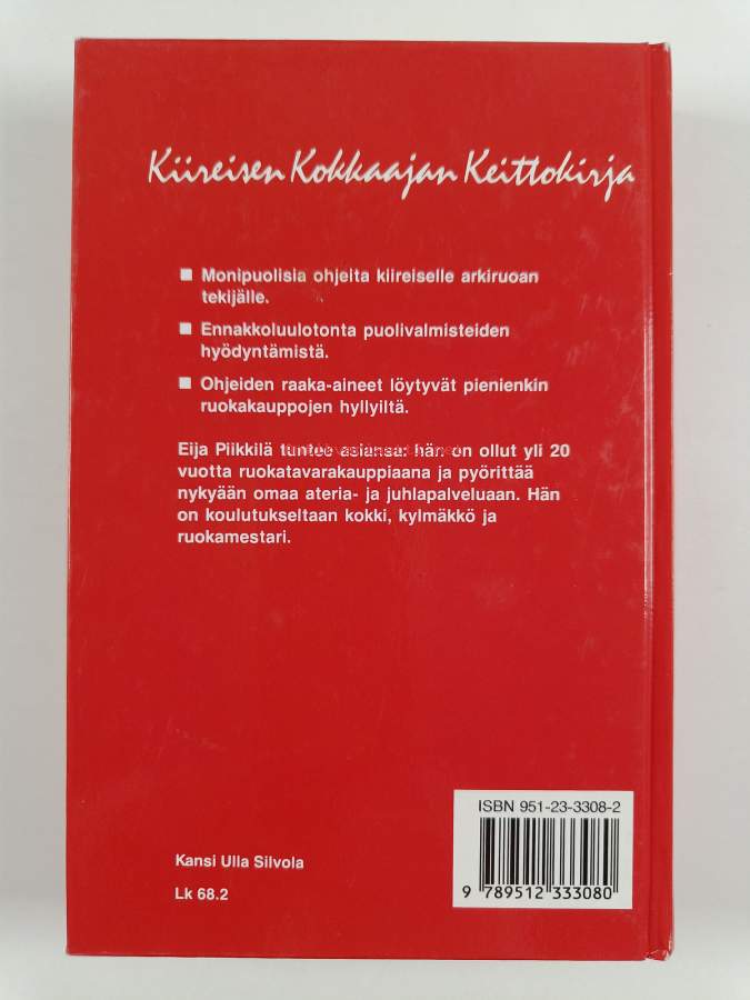 Kiireisen Kokkaajan Kekkerikirja, 2003. 1. painos. Selkeä ja mutkaton juhla-aterioiden keittokirja kiireisille nykyajan kokkaajille. Kirjassa on liki