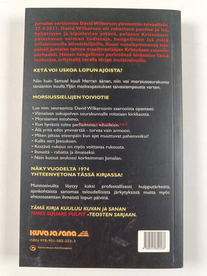 Muu(t) tekijä(t): Hannu RossiMerkinnät: omistajamerkintäSarja: Sana ajallemme 9Asiasanat: saarnaajat, henkilökuvat, profetiat, näyt, eskatologia