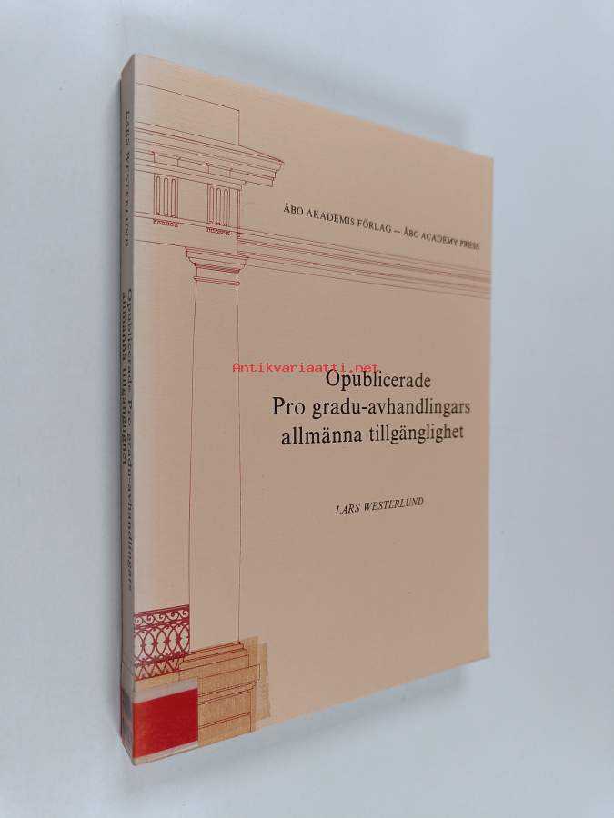Koko nimi: Opublicerade pro gradu-avhandlingars och motsvarande examensarbetens allmänna tillgänglighet i Finland, Sverige, Norge, Danmark och Island : offentlighet, sekretess, upphovsrätt, utlåning, kopiering, citatAsiasanat: tekijänoikeus, kirjastot, yliopistot, julkisuus, oikeusvertailu, opinnäytteet, korkeakoulut, Pohjoismaat, kirjallinen teos