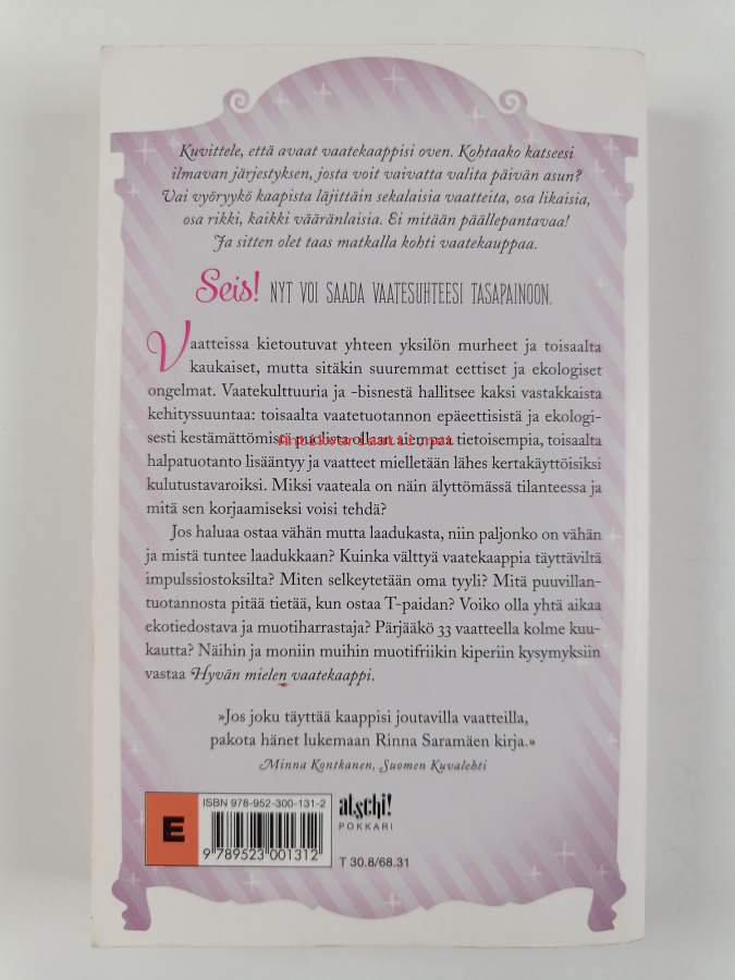 Sarja: Atschi!-pokkariAsiasanat: vaatteet, muoti, pukeutuminen, tyylit, ekologisuus, kestävä kehitys, vaatetusteollisuus, oppaat (teokset), vaateteollisuus, eettisyys