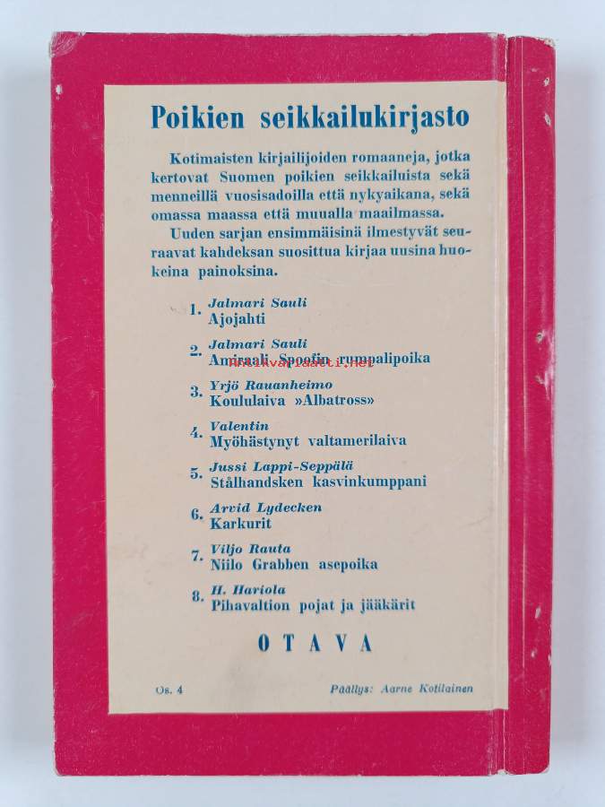 Tyydyttävä. Tarkempi kuntoluokka: K2+ ; Hieman repeämää etukannen ja selkämyksen taitteessa, pientä kulumaa, selkämyksessä kevyttä lukutaittumaa
