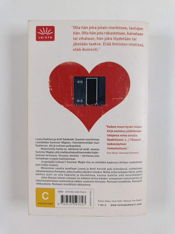 Hyvä. Tarkempi kuntoluokka: K3- ; Pientä nuhruisuutta kansissa, pienoista taitejälkeä kansissa, pienoista rispaantumaa reunoilla ja kulmissa, selkämyksessä lukutaittumaa
