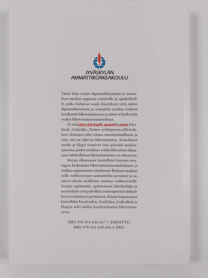 Sarja: Jyväskylän ammattikorkeakoulun julkaisuja 149Asiasanat: verkkokauppa, markkinointi, Internet, verkkomainonta, yritykset, liiketoiminta, sosiaalinen media, suunnittelu, markkinointiviestintä, sähköposti, WWW-sivut, verkkoyhteisöt, hakukoneoptimointi, digitaalinen markkinointi