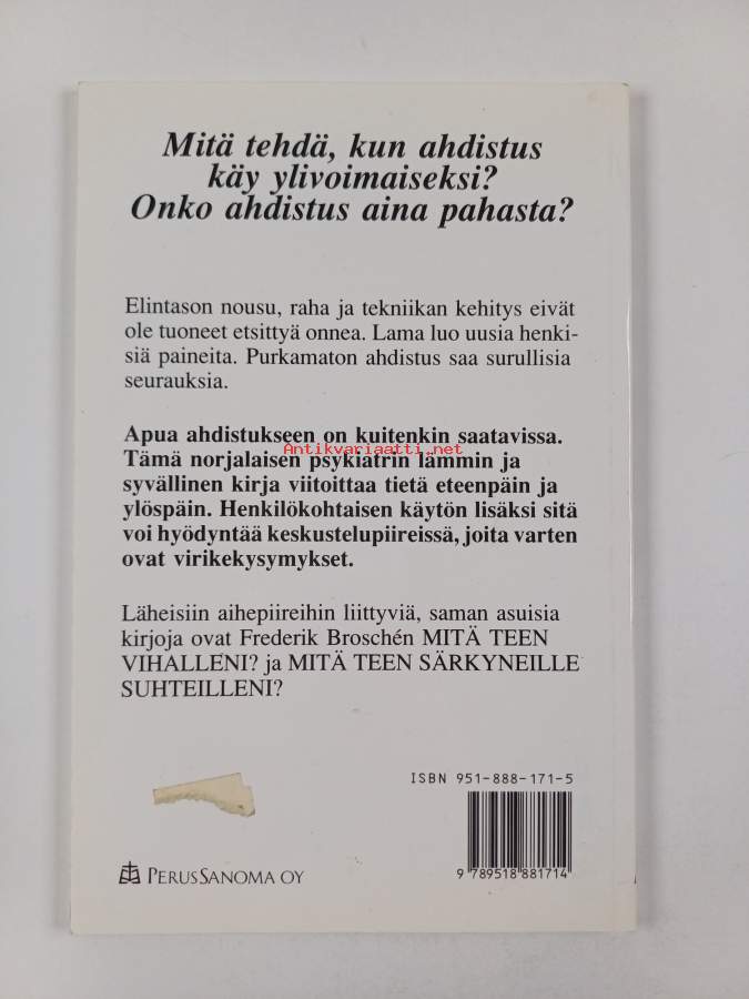 Muu(t) tekijä(t): Raimo Mäkelä, Eva BergerSarja: Suomen Raamattuopiston säätiön julkaisuAlkuteos: Mennesket og angstenAsiasanat: mielenterveyshäiriöt, ahdistus, psykoterapia, psyykenlääkkeet