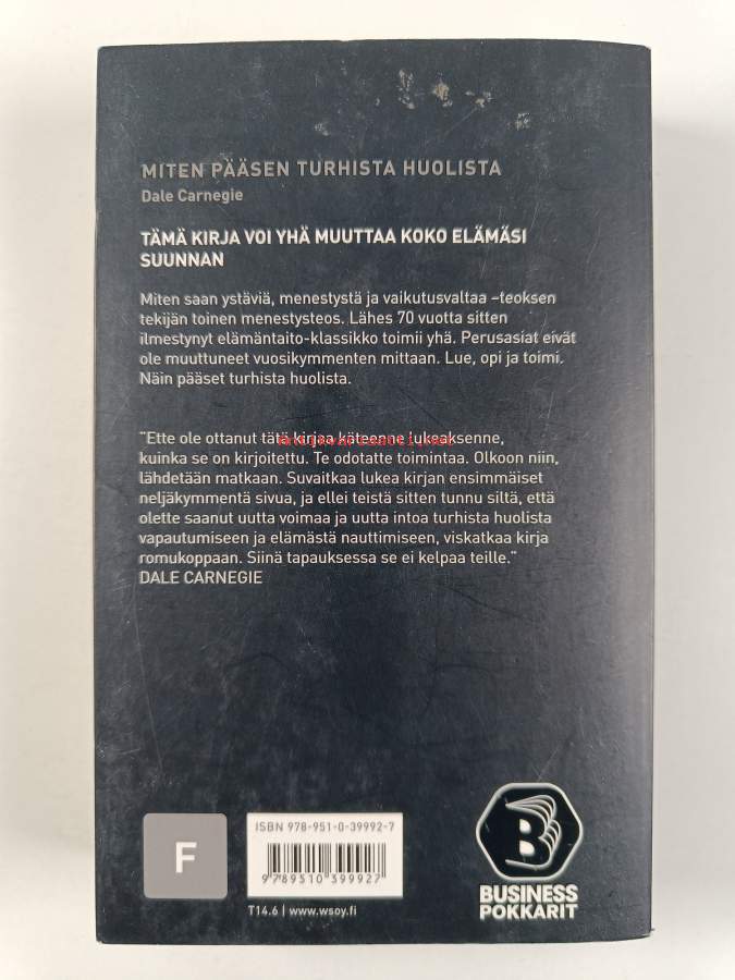 Muu(t) tekijä(t): J. A. HolloSarja: Bon; BusinesspokkaritAlkuteos: How to stop worrying and start livingAsiasanat: elämäntaito, ongelmanratkaisu, elämänhallinta, huolestuneisuus