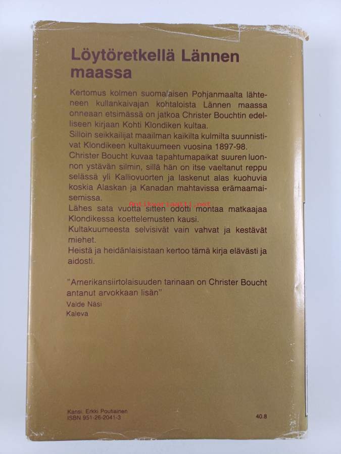 Hyvä. Tarkempi kuntoluokka: K3+ ; Selkämyksessä hieman vinoutta. Kansipaperin kunto: joitain repeämiä/kulumaa