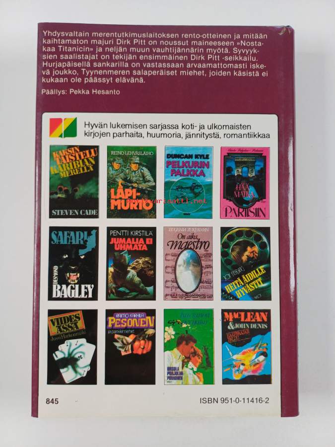 Hyvä. Tarkempi kuntoluokka: K3+ ; Pienoista kulumaa kansissa, aivan pienoista kolhua reunoilla ja kulmissa. Kansipaperin kunto: pientä kulumaa