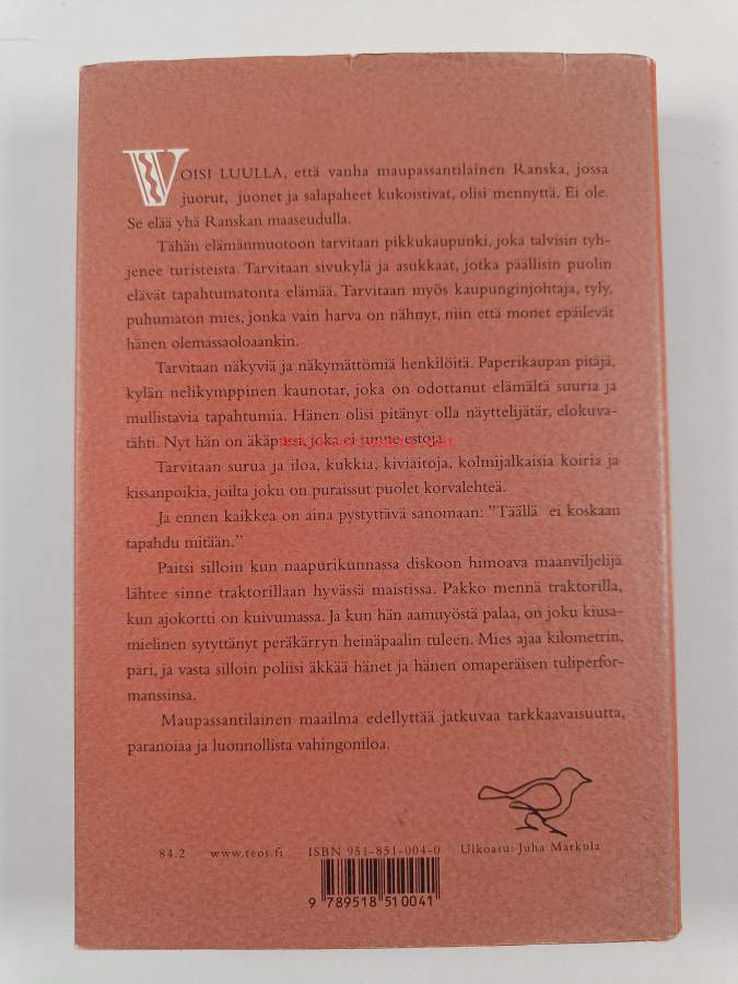 Hyvä. Tarkempi kuntoluokka: K3+ ; Pienoista kulumaa kansissa, pienoista kolhua selkämyksen päissä, edessä hintalapun jäämää. Kansipaperin kunto: pientä kulumaa