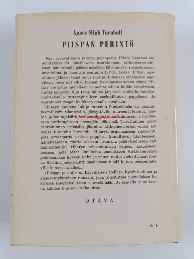 Piispan perintö : romaani / Agnes Sligh Turnbull ; suom. Helvi Vasara.Sarja:Otavan kirjakerho; 1955, 4