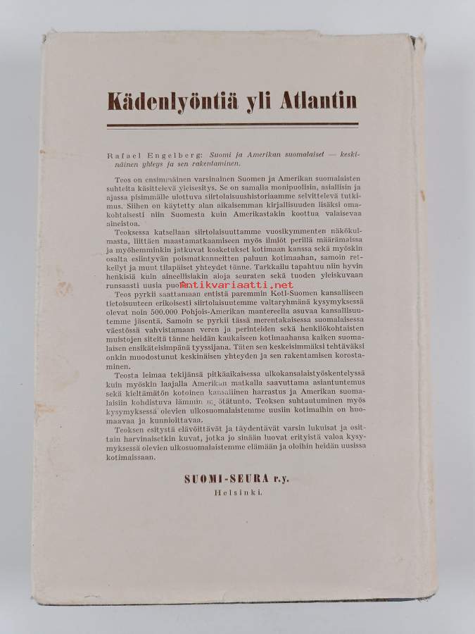 Hyvä. Tarkempi kuntoluokka: K3- ; Pientä kulumaa, hieman kolhua kansissa. Kansipaperin kunto: kulumaa/pienehköjä repeämiä & tahraisuutta