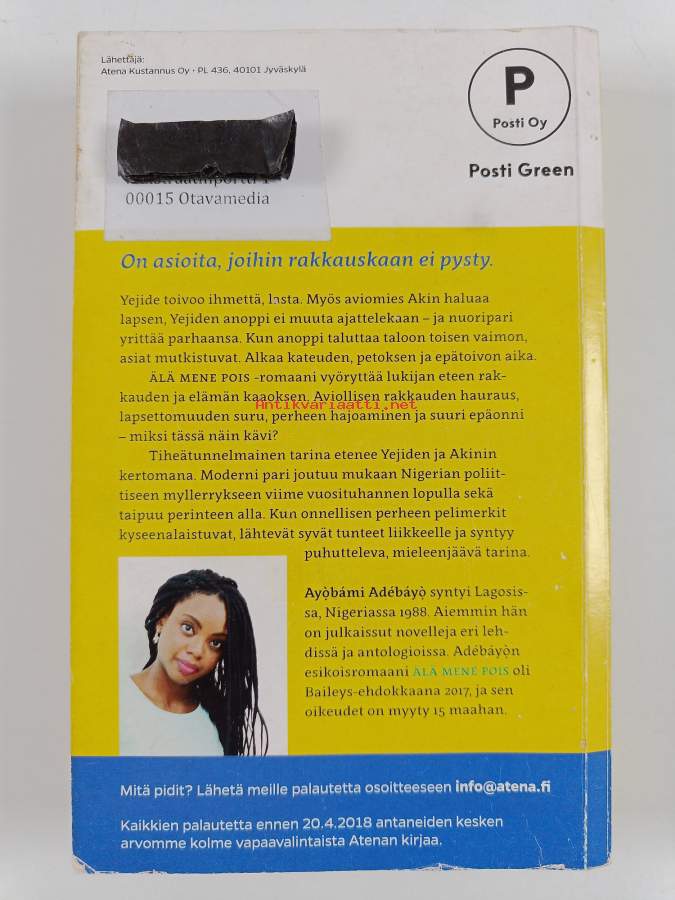 Muu(t) tekijä(t): Heli NaskiMerkinnät: omistajamerkintäAlkuteos: Stay with meAsiasanat: Nigeria, afrikkalainen kirjallisuus