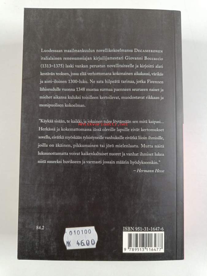 Muu(t) tekijä(t): Vilho (suom.) Hokkanen, Ilmari (suom.) LahtiAlkuteos: DecameroneAsiasanat: klassikot