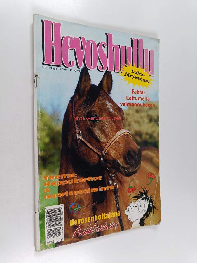 hevoshullu nr 17 2001.fakta laitumelta valmennukseen vakitan tarjous helposti paketti. ..S ja M KOKO 19x36 x60 cm paino 35kg POSTIMAKSU 5e.