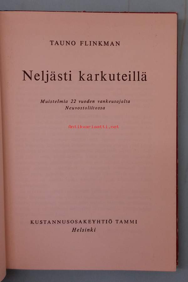 Neljästi karkuteillä – Muistelmia 22 vuoden vankeusajalta Neuvostoliitossa. (Omaelämäkerta, vankileirijärjestelmät)