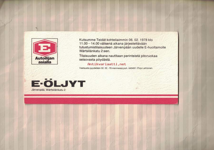 E-Öljyt kutsukortti 1978, Järvenpää