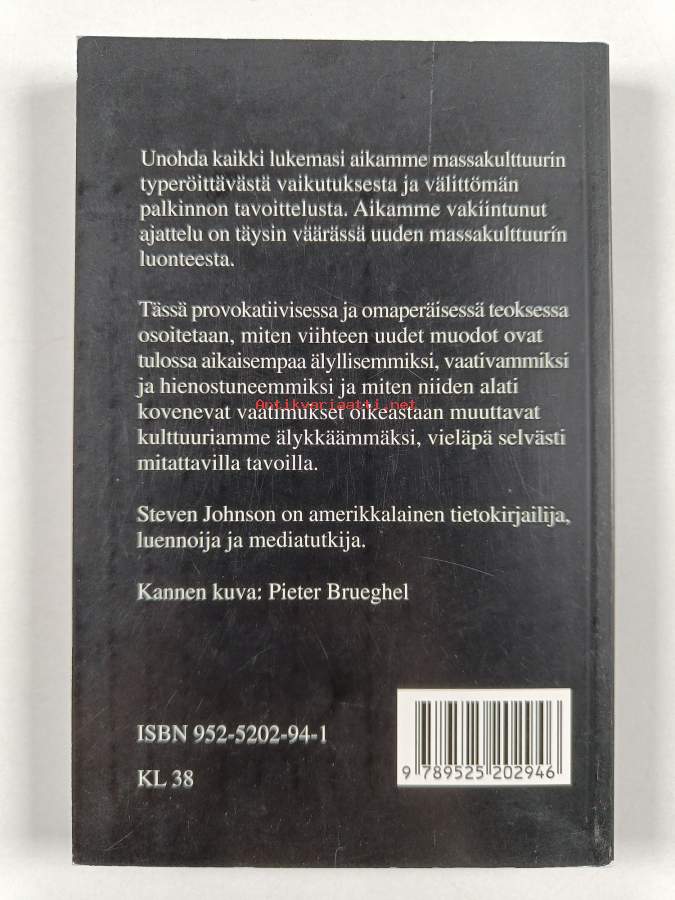 Muu(t) tekijä(t): Kimmo PietiläinenAlkuteos: Everything bad is good for you : how popular culture is making us smarterAsiasanat: älykkyys, vaikutukset, Internet, televisio-ohjelmat, muutos, tietokonepelit, elokuvat, sosiaalinen vuorovaikutus, populaarikulttuuri, viihde, sarjaohjelmat, vastaanotto, kulttuurintutkimus, mediakulttuuri, arki, kompleksisuus, videopelit