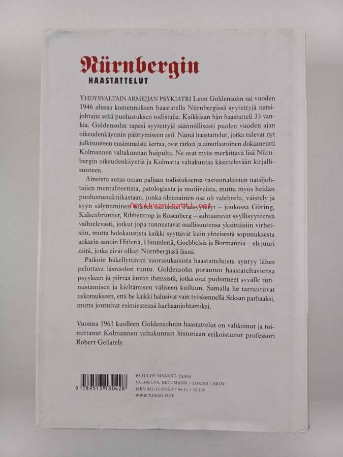 Alkuteos: The Nuremberg interviewsAsiasanat: poliittinen historia, oikeudenkäynti, kolmas valtakunta, sotarikokset, syytetyt