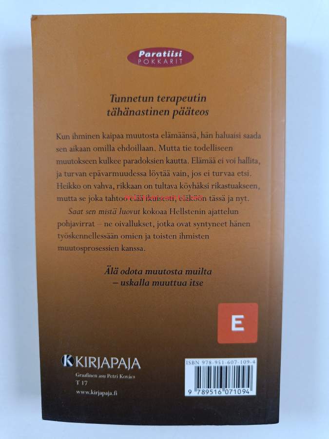 Elämän paradoksit- Saat sen mistä luovut. (Tunnetun terapeutin tähänastinen pääteos, henkinen hyvinvointi, henkinen kasvu)