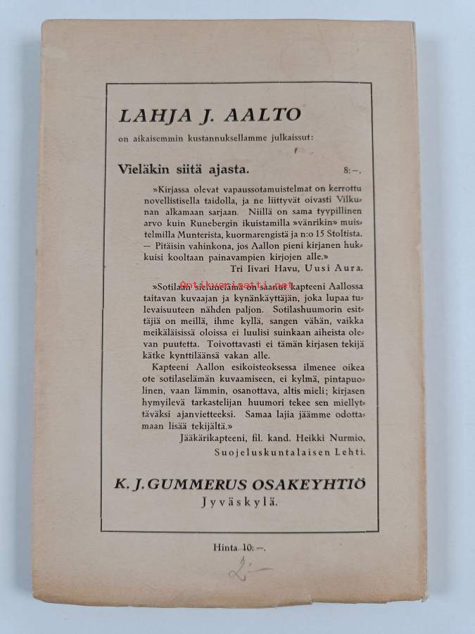Tyydyttävä. Tarkempi kuntoluokka: K2+ ; Hieman tahraisuutta, pientä kulumaa, selkämyksessä hieman vinoutta