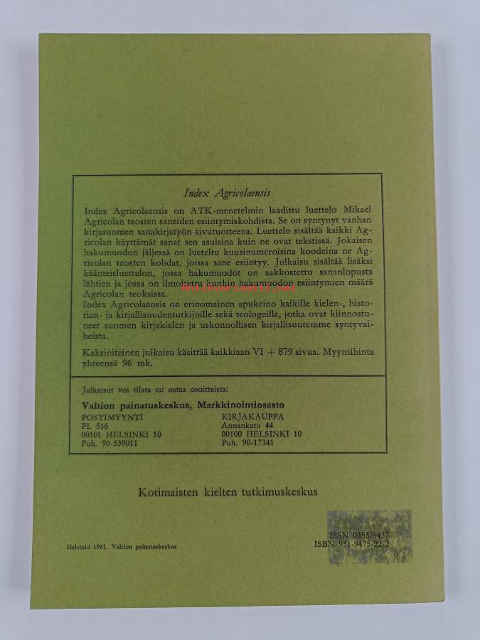 Tyydyttävä. Tarkempi kuntoluokka: K2+ ; Pienoista kulumaa, sivuilla lyijykynämerkintöjä, takana hintalapun jäämää