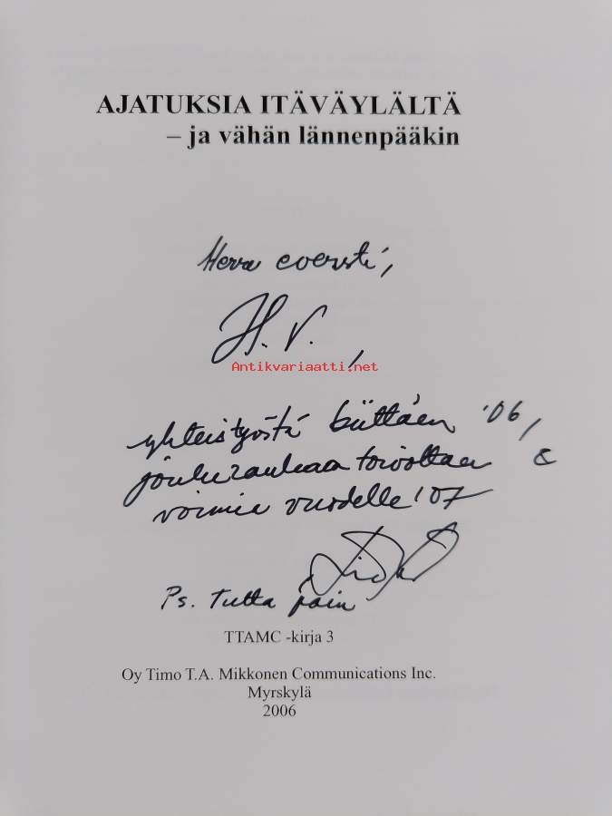 Ajatuksia Itäväylältä - ja vähän lännenpääkin (signeerattu, tekijän omiste)