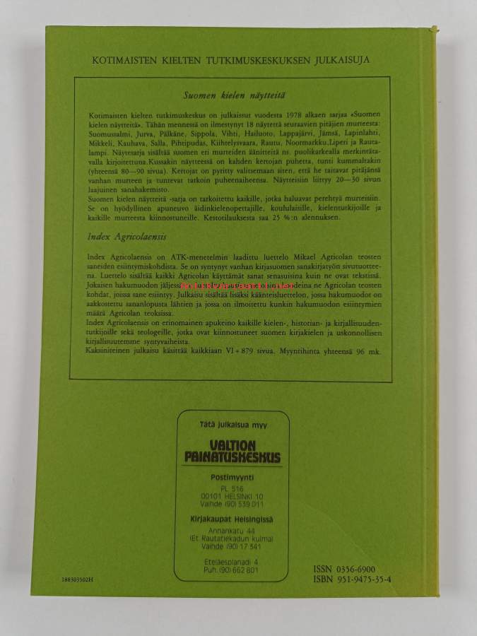 Sarja: Kotimaisten kielten tutkimuskeskuksen julkaisuja 27; Suomen kielen näytteitä 18Asiasanat: suomen kieli, savolaismurteet, kielennäytteet, finska, dialektologia, dialektologi, språkprov (exempel), savolaxiska dialekter