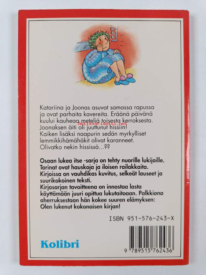 Muu(t) tekijä(t): Pirjo RintakoskiSarja: Osaan lukea itse; Eläköön kirjaAlkuteos: Panique dans l'ascenseurAsiasanat: helppolukuiset, osaan lukea itse