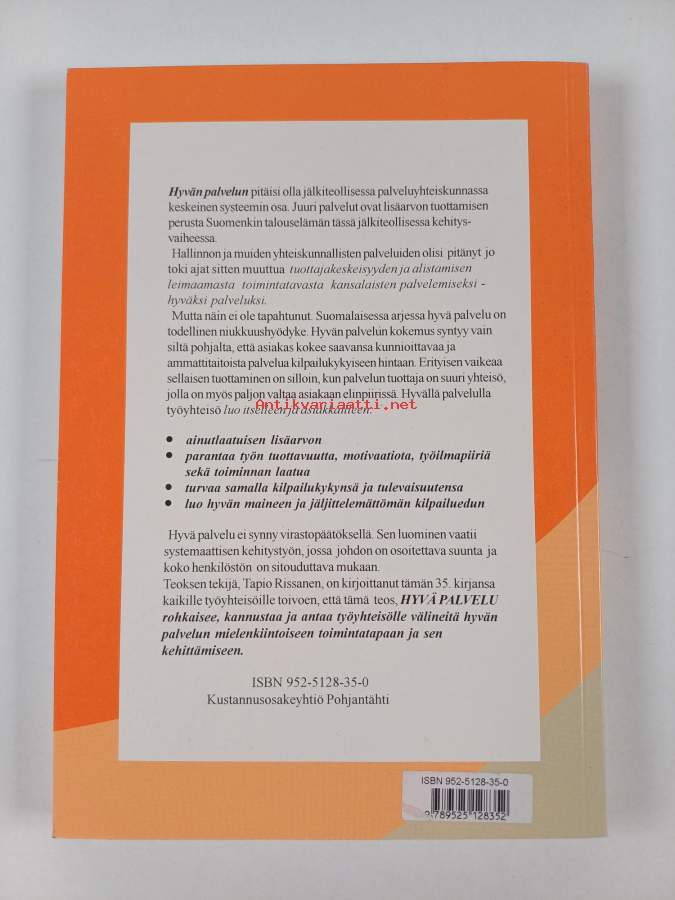 Sarja: Tähti-tietokirjatAsiasanat: markkinointi, mainonta, asiakaslähtöisyys, asiakkaat, palvelut, yritykset, johtaminen, kehittäminen, laatu, asiakaspalvelu, hinnoittelu, tuotekehitys, asiakastyö, palveluala, asiakkuus, arvonluonti, kannattavuus, lisäarvo, palveluliiketoiminta