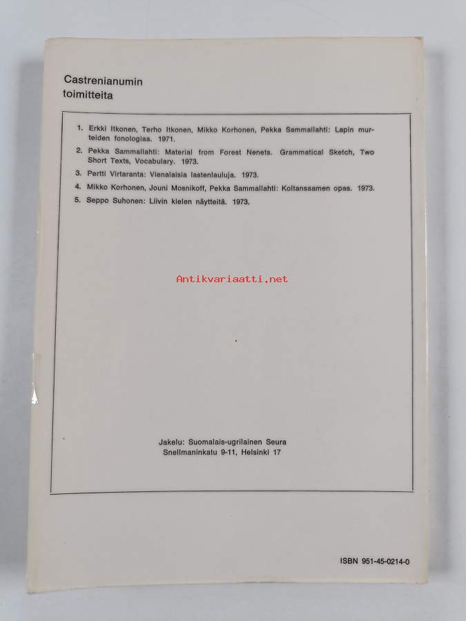 Muu(t) tekijä(t): Pertti VirtarantaMerkinnät: omistajamerkintäSarja: Castrenianumin toimitteita 3