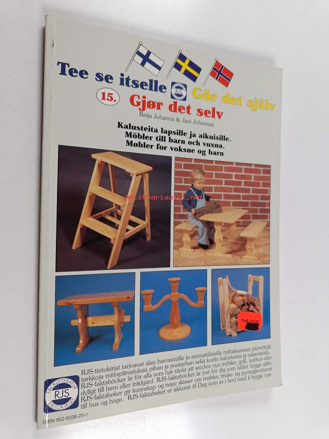 Koko nimi: Tee se itselle; Gör det själv = Gjør det selv, 15 - Kalusteita lapsille ja aikuisille = Möbler till barn och vuxna = Møbler for barn og voksne - Gör det själv - Gjør det selv - Kalusteita lapsille ja aikuisille - Möbler till barn och vuxna - Møbler for baMuu(t) tekijä(t): Jani JohannesSarja: Tee se itselle 15; Gör det själv = Gjør det selv; RJS-tietokirjatAsiasanat: huonekalut, puutyöt