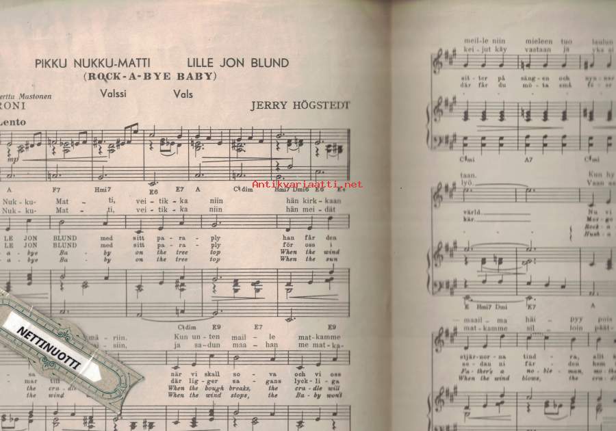 Pikku Nukku-Mtti = Lille Jon Blund = Rock-A-Bye-Baby