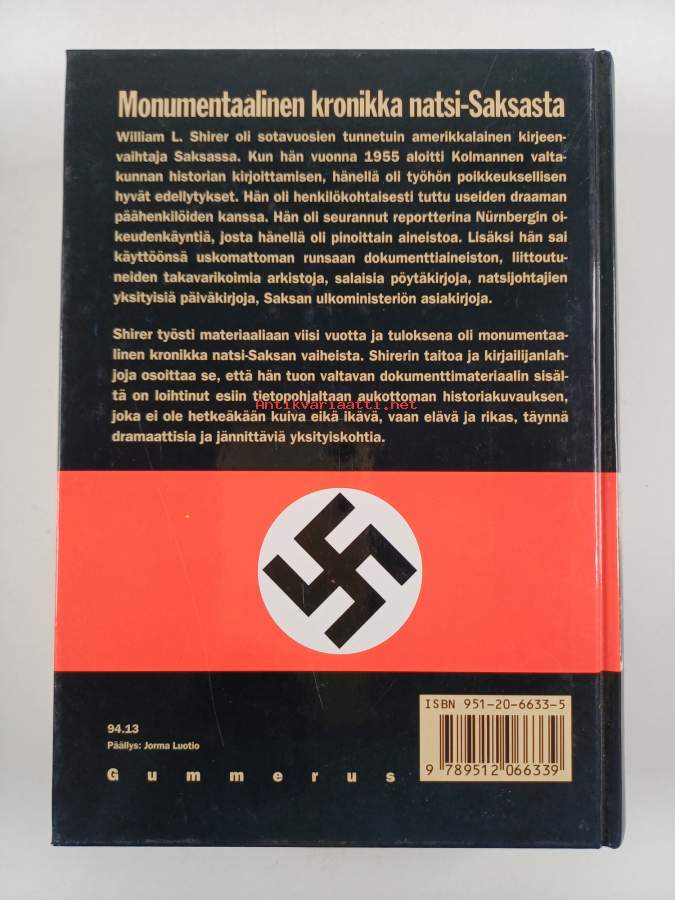Muu(t) tekijä(t): Tapio HiisivaaraAlkuteos: The rise and fall of the Third ReichAsiasanat: historia, sotahistoria, poliittinen historia, toinen maailmansota, kansallissosialismi, natsit, kolmas valtakunta