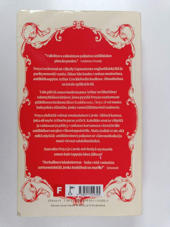 Sarja: Antiikin metsästäjät 1Alkuteos: The Antique Hunter's Guide to MurderAsiasanat: huumori, antiikkiesineet, murha, kaunokirjallisuus, kartanot, rikokset, väärennökset, jännityskirjallisuus