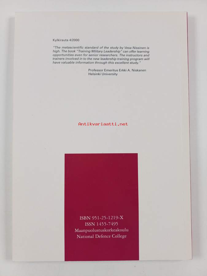 Sarja: Julkaisusarja / Maanpuolustuskorkeakoulu, johtamisen laitos. 1, Tutkimuksia n:o 18Asiasanat: sotilaskoulutus, upseerit, johtaminen, ammattitaito, asevoimat, sotilasjohtaminen, sotilassosiologia, sotilaspsykologia, esimies