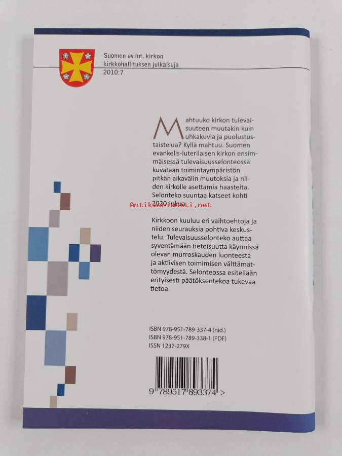 Merkinnät: omistajamerkintäSarja: Suomen ev.-lut. kirkon kirkkohallituksen julkaisuja 2010:7Asiasanat: evankelis-luterilainen kirkko, tulevaisuudenodotukset, uskonnollisuus, visiot, sosiaalinen muutos, toimintamuodot, kirkkososiologia, kirkon hallinto, religiositet, visioner, evangelisk-lutherska kyrkan, social förändring, framtidsförväntningar, verksamhetsformer, kyrkans förvaltning, kyrkosociologi