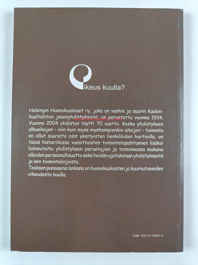 Oikeus kuulla? : Helsingin huonokuuloiset ry 70 vuotta (1934-2004)