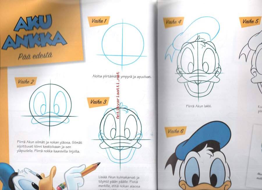 Ankkataiteilija Kari Korhonen opastaa piirtämään esim. ilmeikkään Iineksen tai hupaisan Hessun.