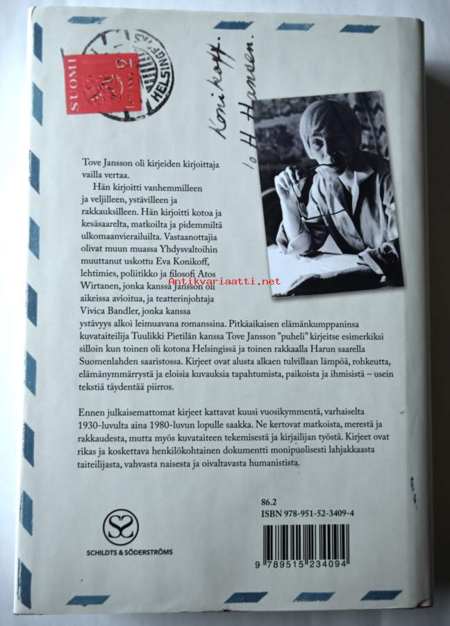 Kirjeitä Tove Janssonilta on valikoima kirjeitä Toven läheisimmille ihmisille, joiden kanssa taiteilija kävi pitkää ja jatkuvaa kirjeenvaihtoa. Ne ulottuvat 1930-luvulta 1980-luvulle. Kirjeet on osoitettu perheelle, ystäville ja rakkaille - elämänkumppanilleen kuvataiteilija Tuulikki Pietilälle Tove Jansson kirjoitti heti kun he olivat hetkenkin erossa toisistaan: kaikista sattumuksista ja tapahtumista, pienistä ja suurista. Kirjeet ovat hyvän yhteiselon korkea veisu. "Tuulikki, tahtoisin päästä lukemaan pidemmälle kirjaa sinusta. Kaipaan sinua kaikin tavoin, ja olen enemmän yksin ihmisten keskellä kuin silloin kun kuljin yksin ja ajattelin sinua." ToveKirjeistä kuvastuu aika, jota Tove Jansson eli sekä taiteilijan mielenlaatu. Ennen kaikkea niistä löytyy se pohja, jonka kautta Muumit syntyivät ja elävät yhä suositumpina hahmoina aikuisten ja lasten sydämissä.