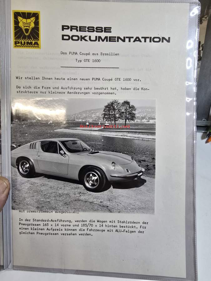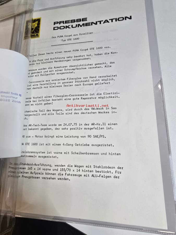 Puma coupe typ GTE 1600 presse dokumentation 3/ 76 geneve.