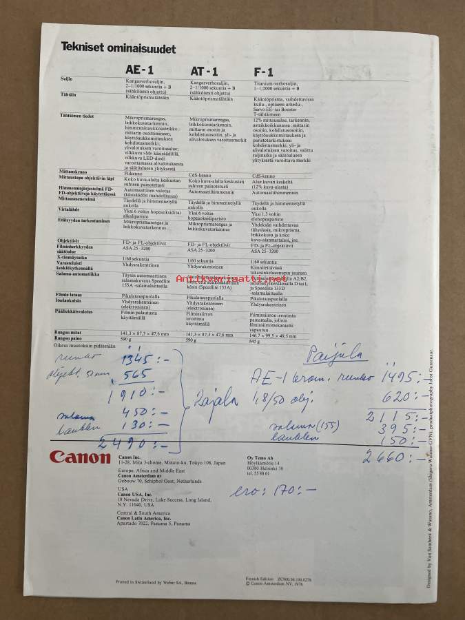 Canon Reflex kamerasarja 1975 -myyntiesite