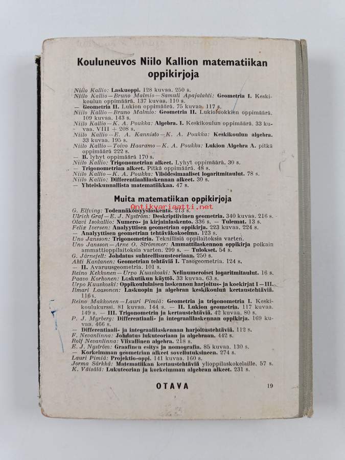 Merkinnät: omistajamerkintäAsiasanat: oppikoulu, matematiikka, oppikirjat, läroböcker, matematik, läroverk