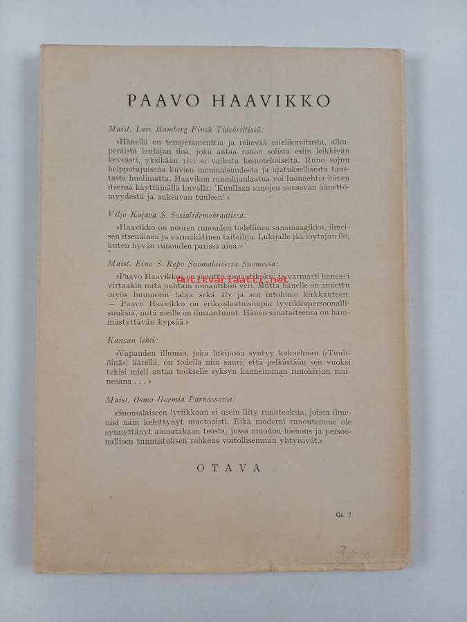 Hyvä. Tarkempi kuntoluokka: K3- ; Hieman kulumaa, selkämyksessä hieman vinoutta, kansien reunoilla taittumaa ja rispaantumaa (koska ohuehkot kannet sivuja leveämmät)