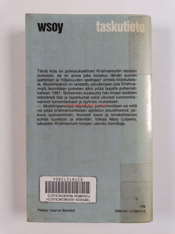 Sarja: Taskutieto 151Alkuteos: Krishnamurti's notebook