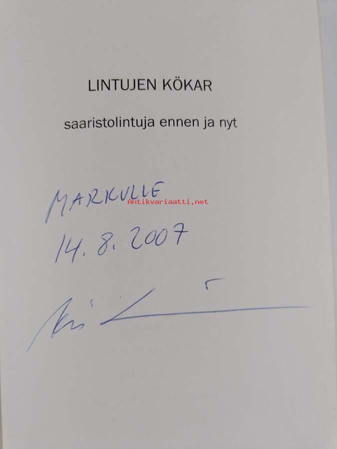 Lintujen Kökar : saaristolintuja ennen ja nyt = Fåglarnas Kökar : skärgårdskommunens fåglar förr och nu (signeerattu, tekijän omiste)