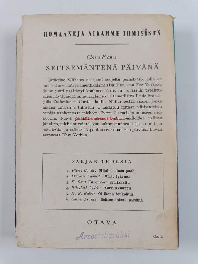 Muu(t) tekijä(t): Kyllikki VillaSarja: Romaaneja aikamme ihmisistä 6Alkuteos: Et le septieme jour ...