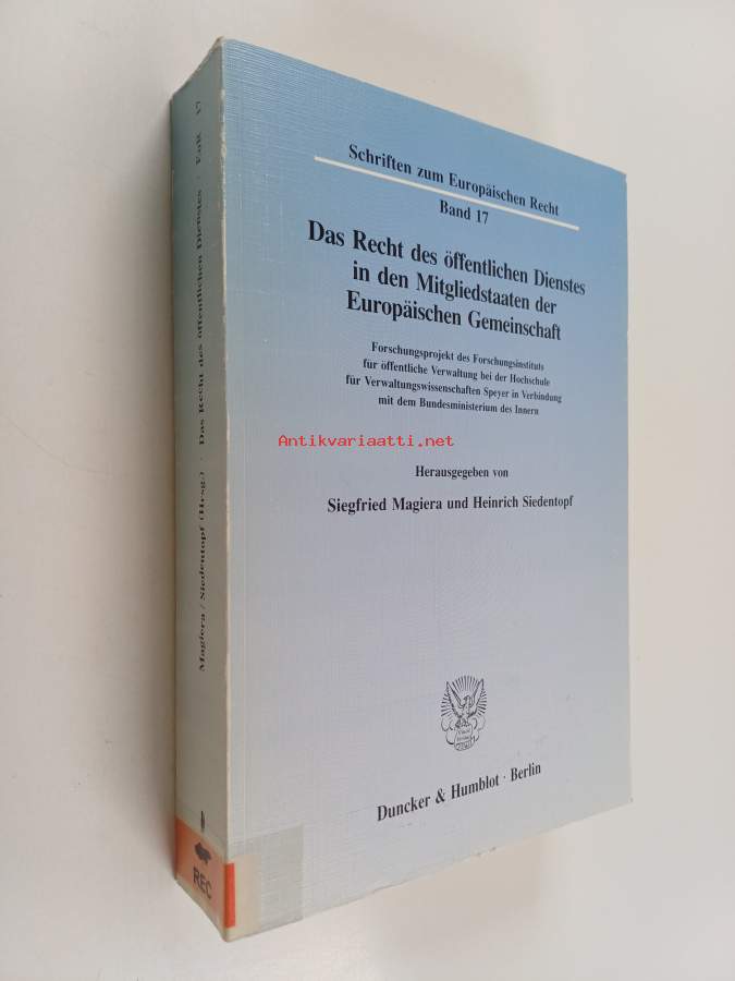 Koko nimi: Das Recht des öffentlichen Dienstes in den Mitgliedstaaten der Europäischen Gemeinschaft : Forschungsprojekt des Forschungsinstituts für öffentliche Verwaltung bei der Hochschule für Verwaltungswissenschaften Speyer in Verbindung mit dem Bundesministerium des InnernMuu(t) tekijä(t): Heinrich SiedentopfSarja: Schriften zum europäischen Recht Bd 17Asiasanat: virkamiehet, integraatio, oikeusvertailu, julkinen hallinto, julkisoikeus, virkamiesoikeus, hallinto-oikeus (oikeudenala), integration, rättsjämförelse, förvaltningsrätt (rättsområde), offentlig förvaltning, tjänstemannarätt, tjänstemän (offentligt anställda), offentlig rätt