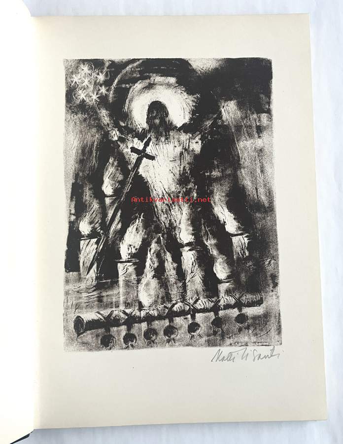 Johanneksen Ilmestys upeilla kivipiirroksilla. Jokaisessa piirroksessa Matti Visantin nimikirjoitus.