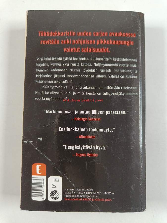 Hyvä. Tarkempi kuntoluokka: K3- ; Pientä kulumaa kansissa, hieman taipumaa, selkämyksessä vinoutta, selkämyksessä lukutaittumaa